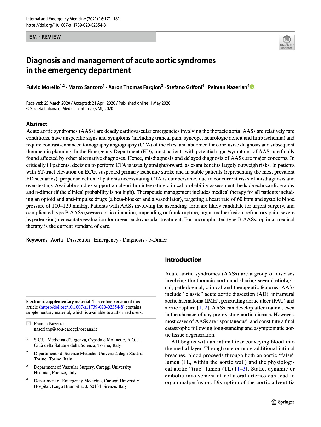 Diagnosis and management of acute aortic syndromes in the emergency department